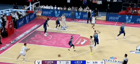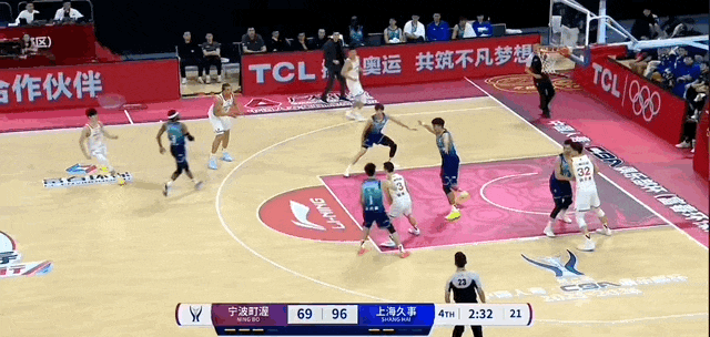 洛夫顿打手犯规,宁鸿宇三罚三中。随后古德温带球,从左侧弧顶处传向正面弧顶时,被宁鸿宇抢断,直接反击暴扣,宁鸿宇连得5分,帮助宁波男篮将分差追到个位数,上海男篮叫停比赛。